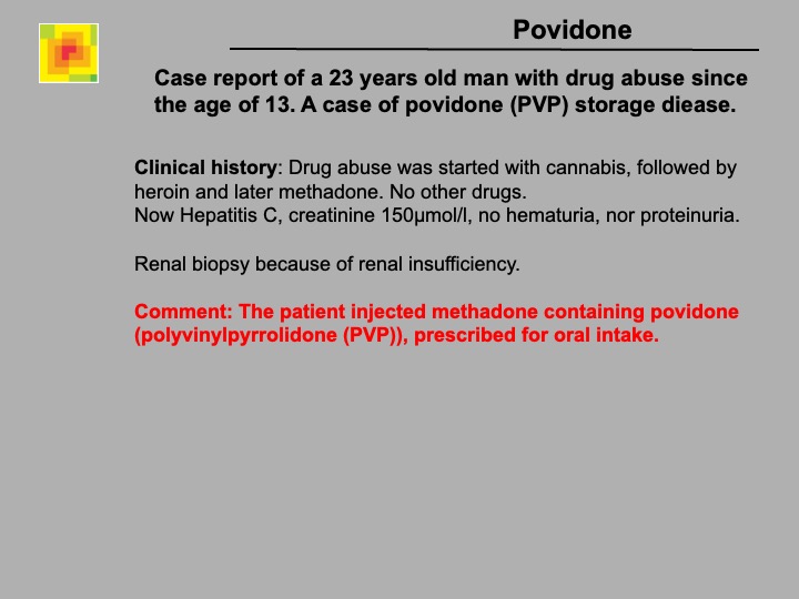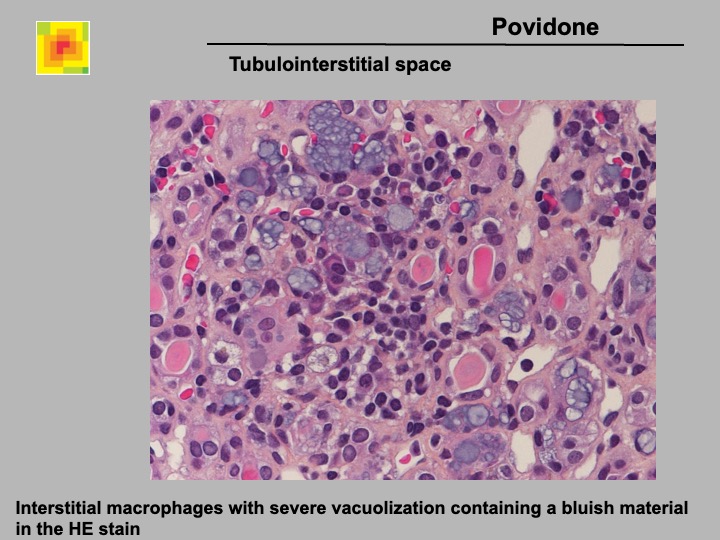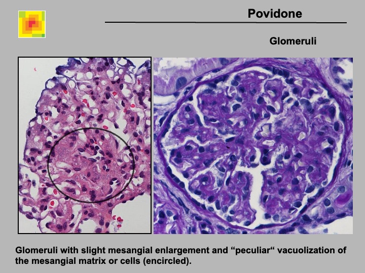 Definition: Storage of povidone in the kidney after injection in drug abuse