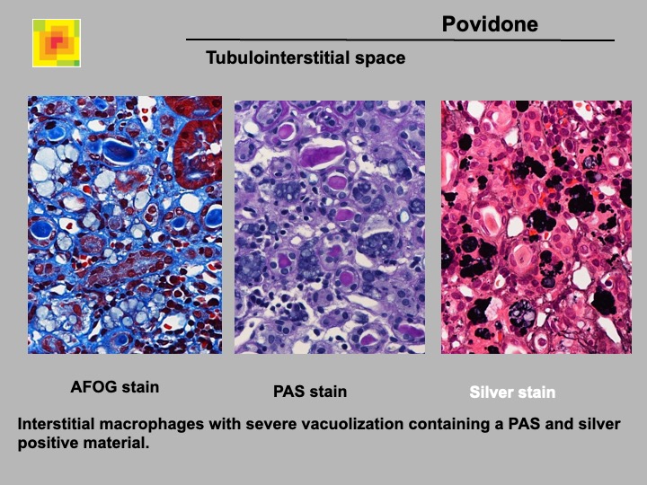 Definition: Storage of povidone in the kidney after injection in drug abuse