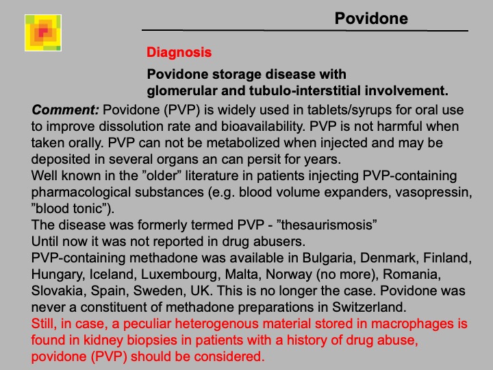 5.6 Povidone (PVP) storage disease